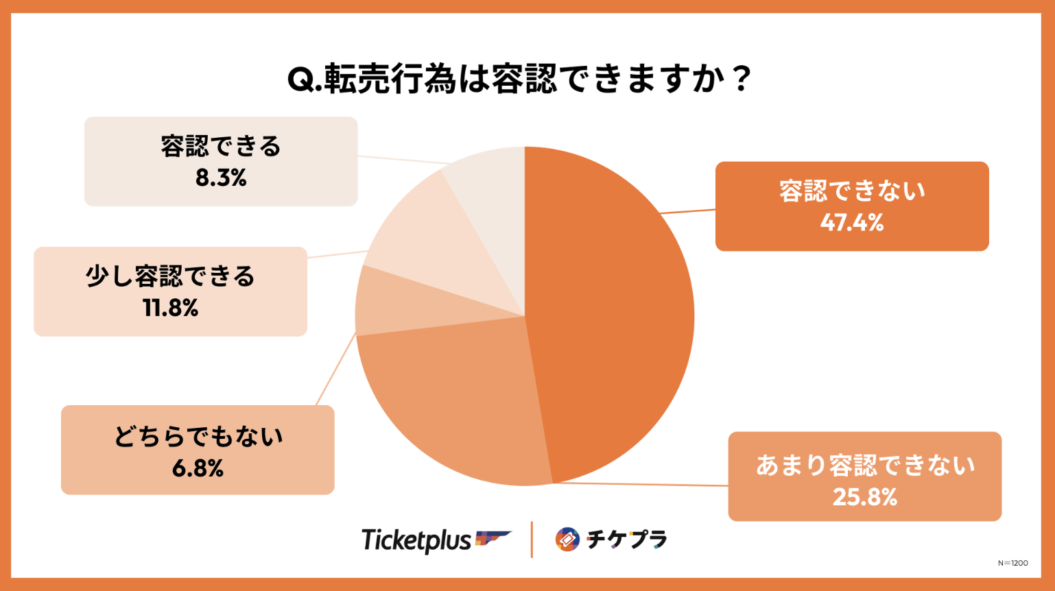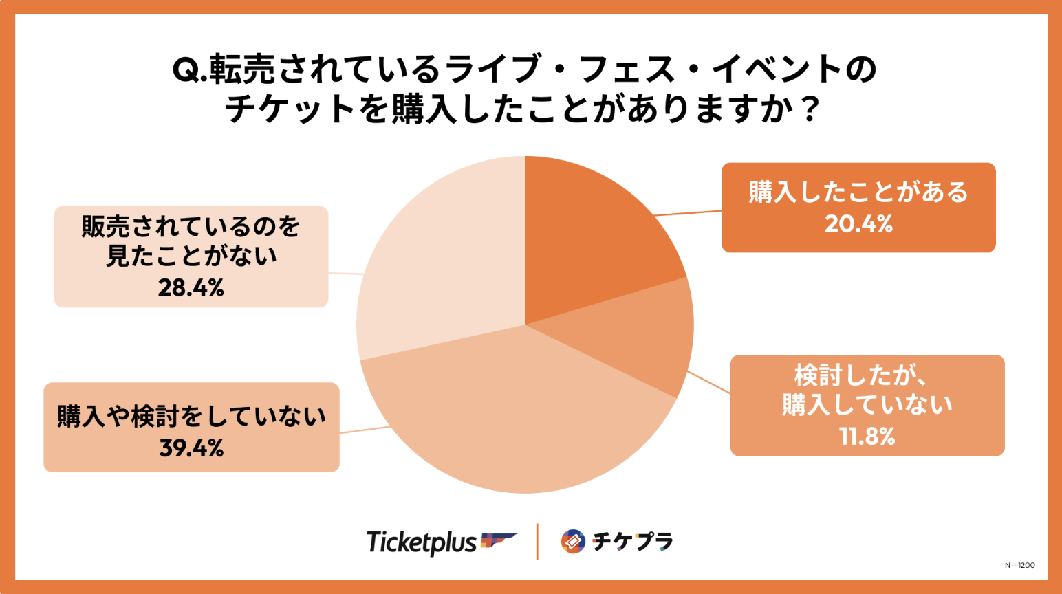 チケットプラスは、全国のライブ・フェス・イベントのチケット購入経験者1,200人を対象に実施した「チケット不正転売に関する実態調査」の結果を発表した。