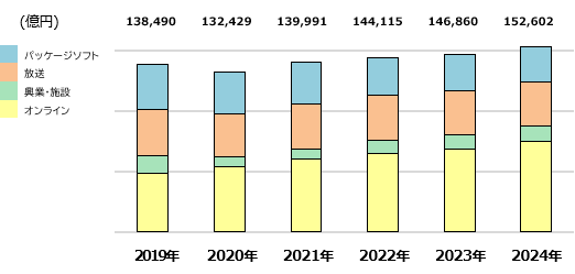 2024年の日本のコンテンツ市場規模は前年比3.9%増の15兆円を超え、過去最大となった。分野別には、映像・音楽配信、スマホゲームとオンライン広告が拡大し、この合計が全体の過半に迫った。