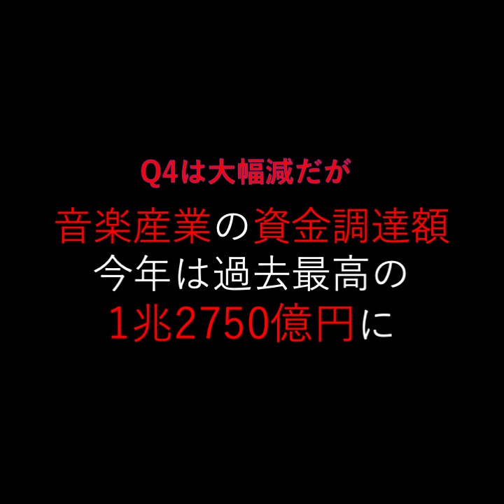 Digital Music News(DMN)は、2025年第4四半期(10〜12月)の音楽業界の累計資金調達額が11月24日時点で12億ドルを突破したと発表した。前年同期比で55%縮小したものの、1年前は資金担保証券(ABS、楽曲カタログなどを担保に証券化)の発行を通じた大規模な資金調達が複数あったため、この反動が大きい。
