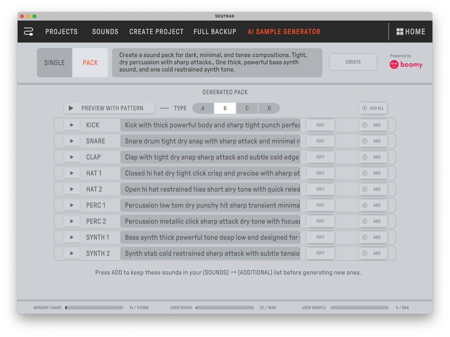 「SEQTRAK」は、ドラムやシンセなどさまざまなサウンドを組み合わせ、直感的な音楽制作を可能にするオールインワンギア。内蔵音源に加え、専用アプリに生成AIを組み込むことで、音素材を簡単に追加でき、クリエイターのインスピレーションを拡張する新しい音楽制作体験を提案する。