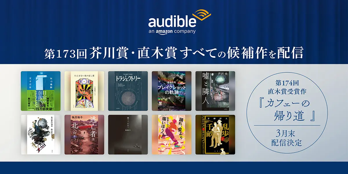 Audible、第173回芥川賞・直木賞すべての候補作を配信ラインアップ完了 第174回直木賞受賞作「カフェーの帰り道」も3月末配信決定
