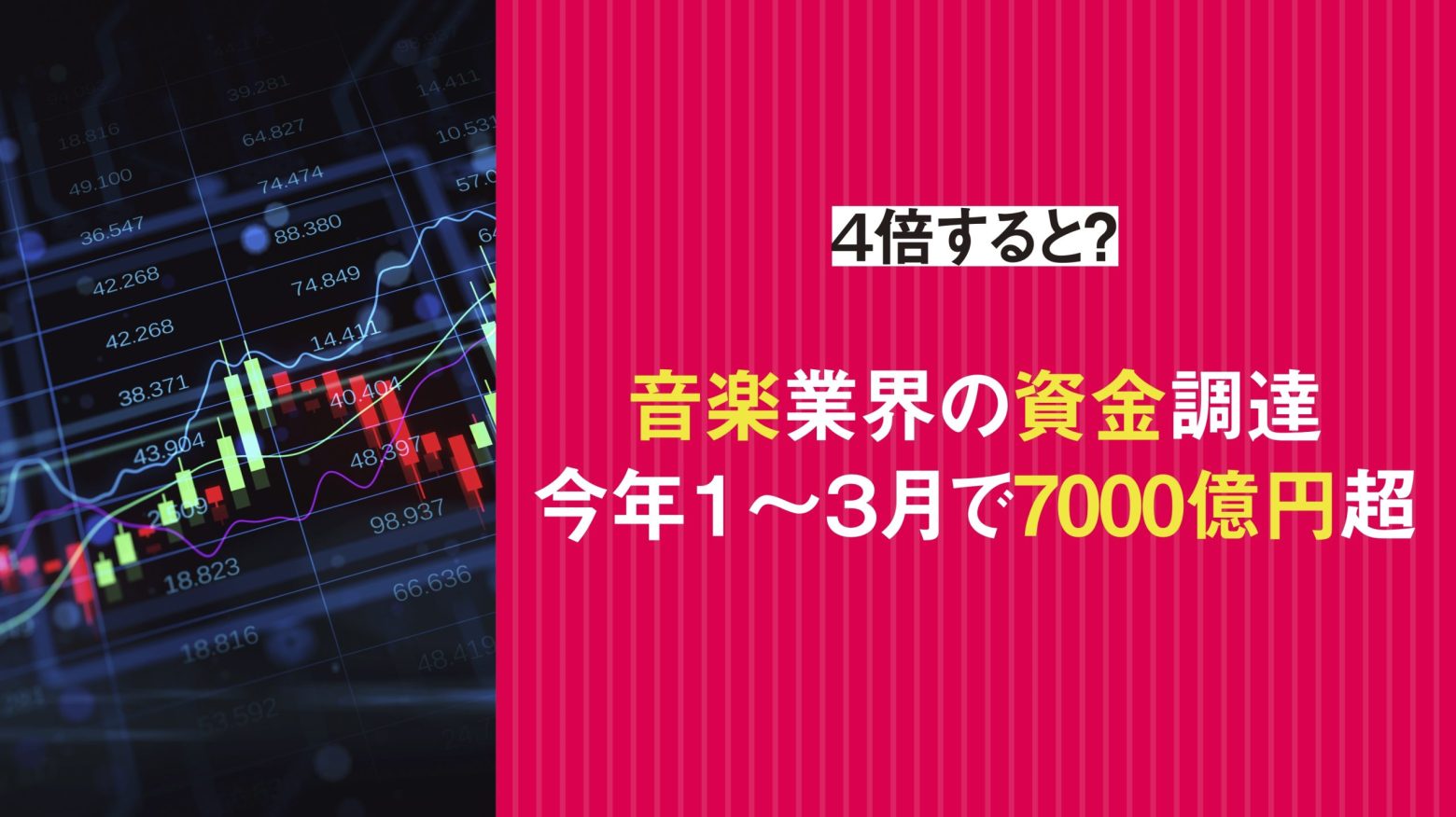 Digital Music News(DMN)は、独自のデータを基に、2026年第1四半期(1〜3月)の音楽業界の累計資金調達額(「業界隣接」分を除く)が46億6,000万ドル(約7,373億円)に達したと発表した。前年同期の20億ドル弱から大きく伸びている。