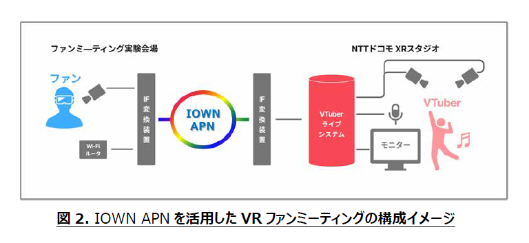 NTTとNTTドコモは、IOWN APNを活用した高品質・高臨場なVRファンミーティングの共同実験を3月15日に成功させた。VTuberが出演するファン参加型ライブ「ConnectVFes」の特別イベントとして実施された。