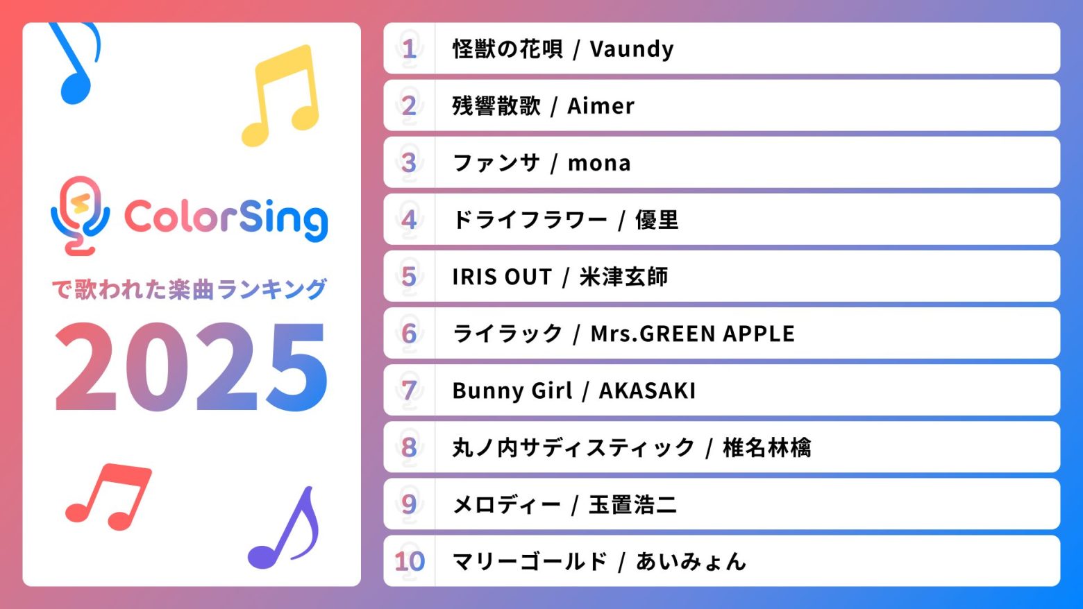 ColorSing、ライブ配信で一番歌われた楽曲ランキング2025発表 1位は「怪獣の花唄」